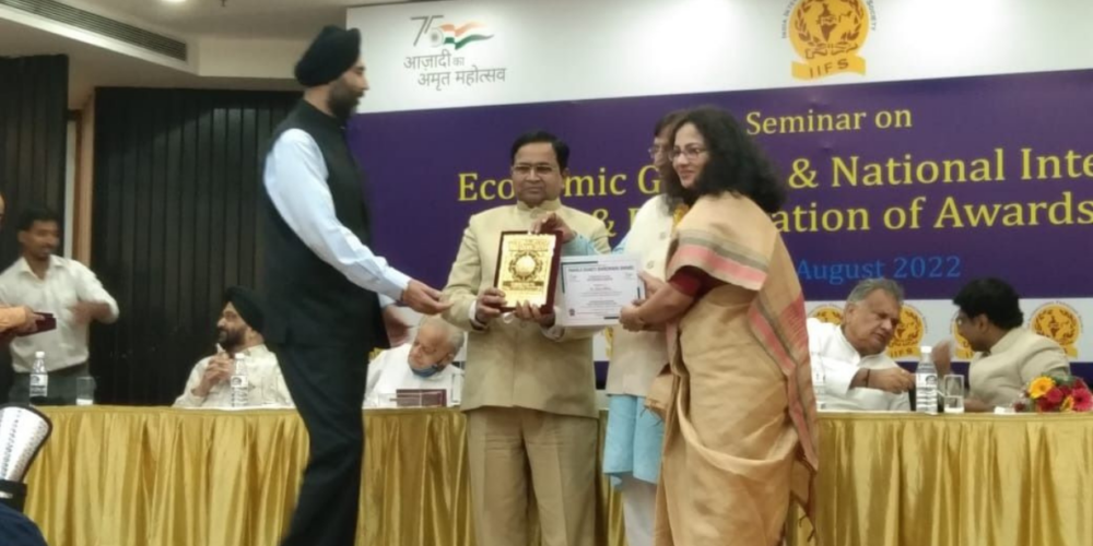 Receiving RASHTRIYA GAURAV AWARD from Shri Shivraj Patil
